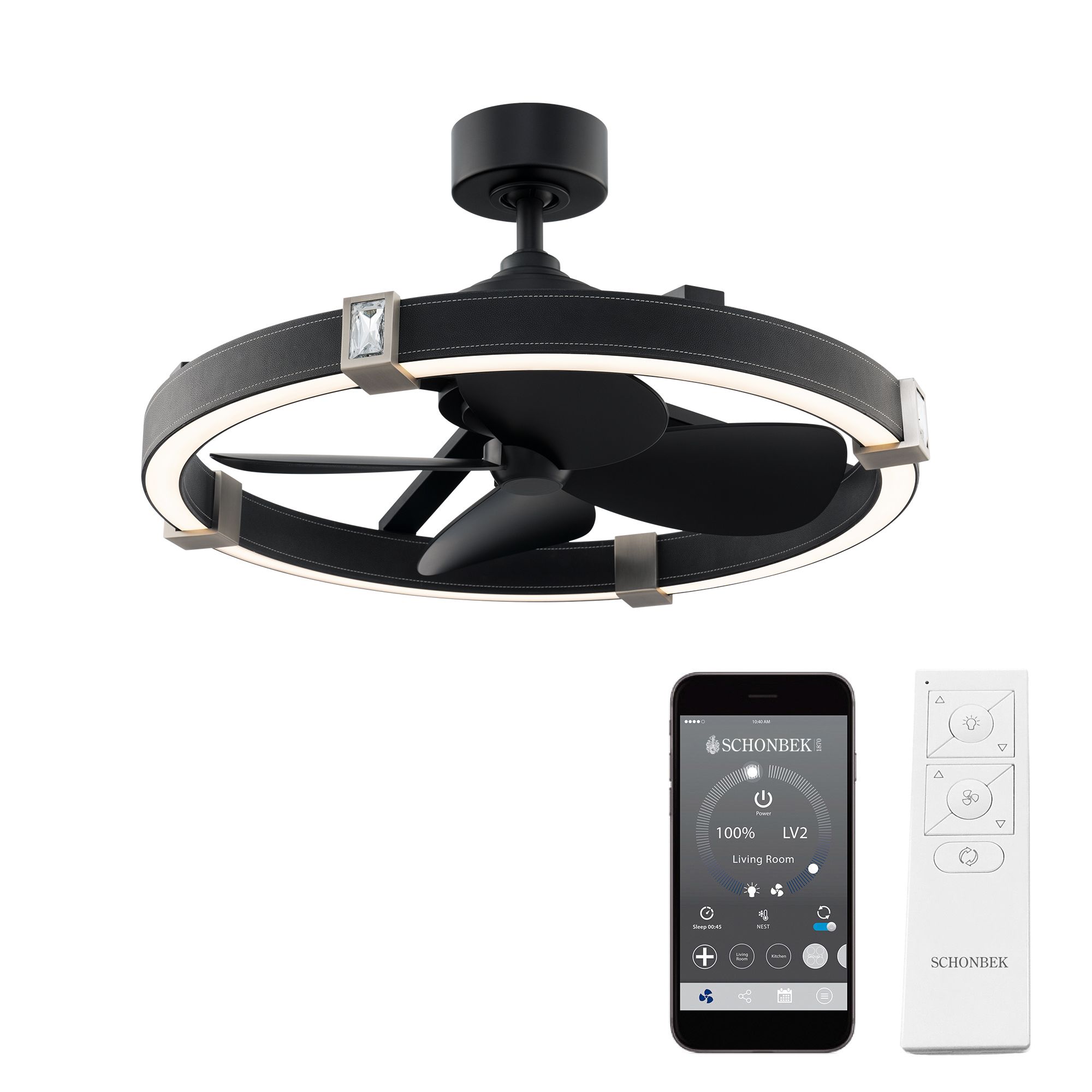 29" Schonbek-Beyond Atomic Black Brushed Nickel LED Smart Crystal Fand