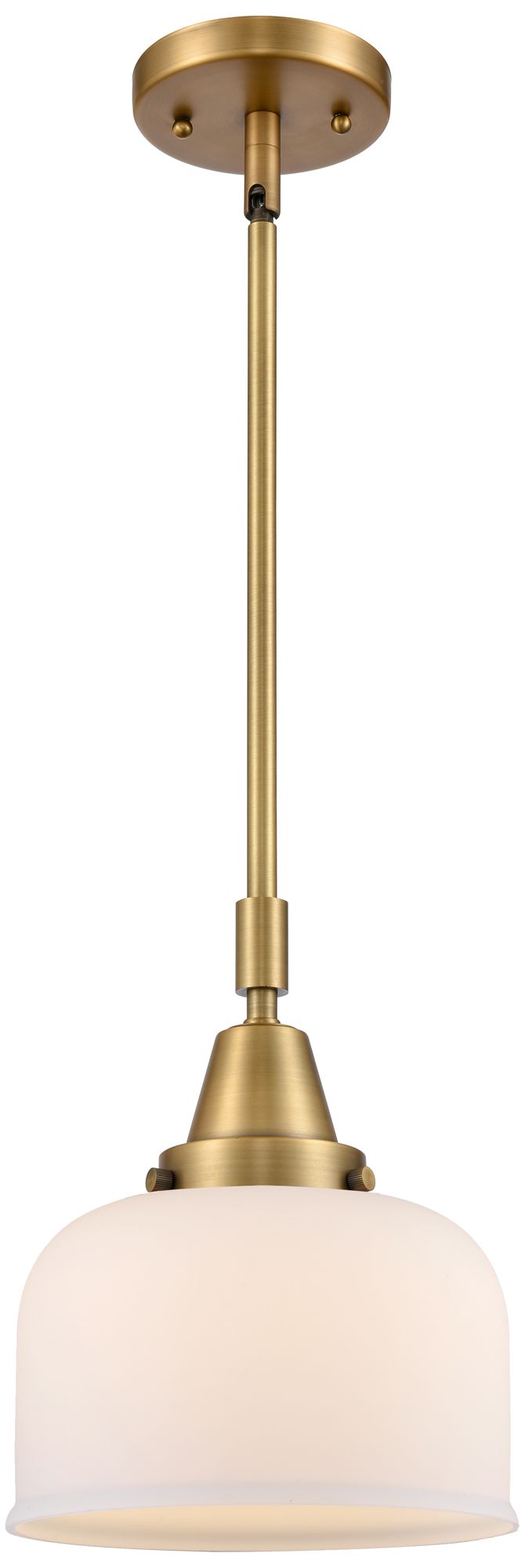 Caden Bell 8" Wide Brushed Brass Stem Hung Mini Pendant w/ White Shade