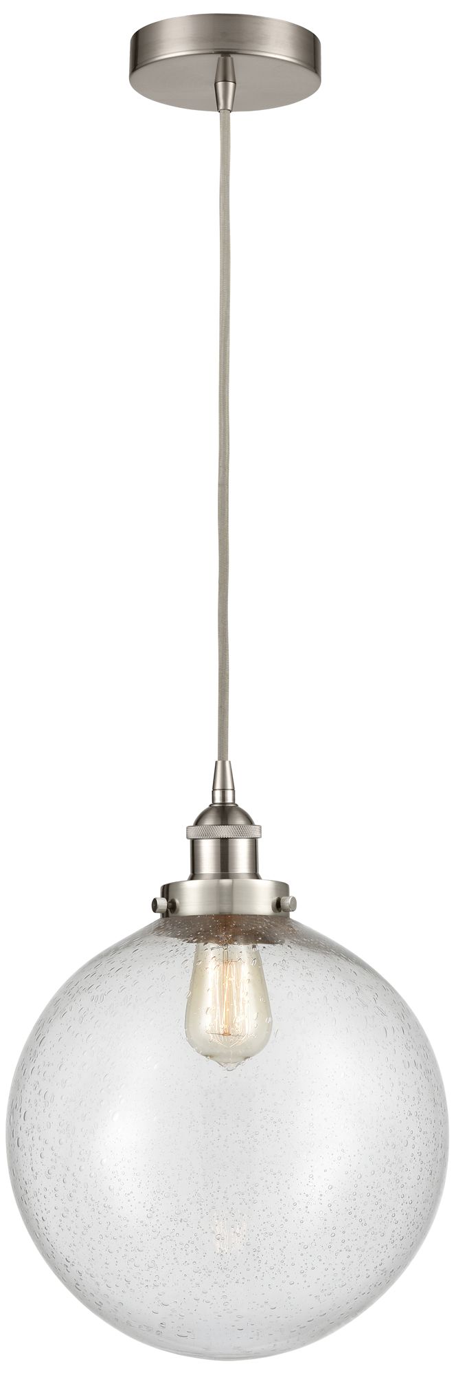 Beacon 12" Brushed Satin Nickel Mini Pendant w/ Seedy Shade