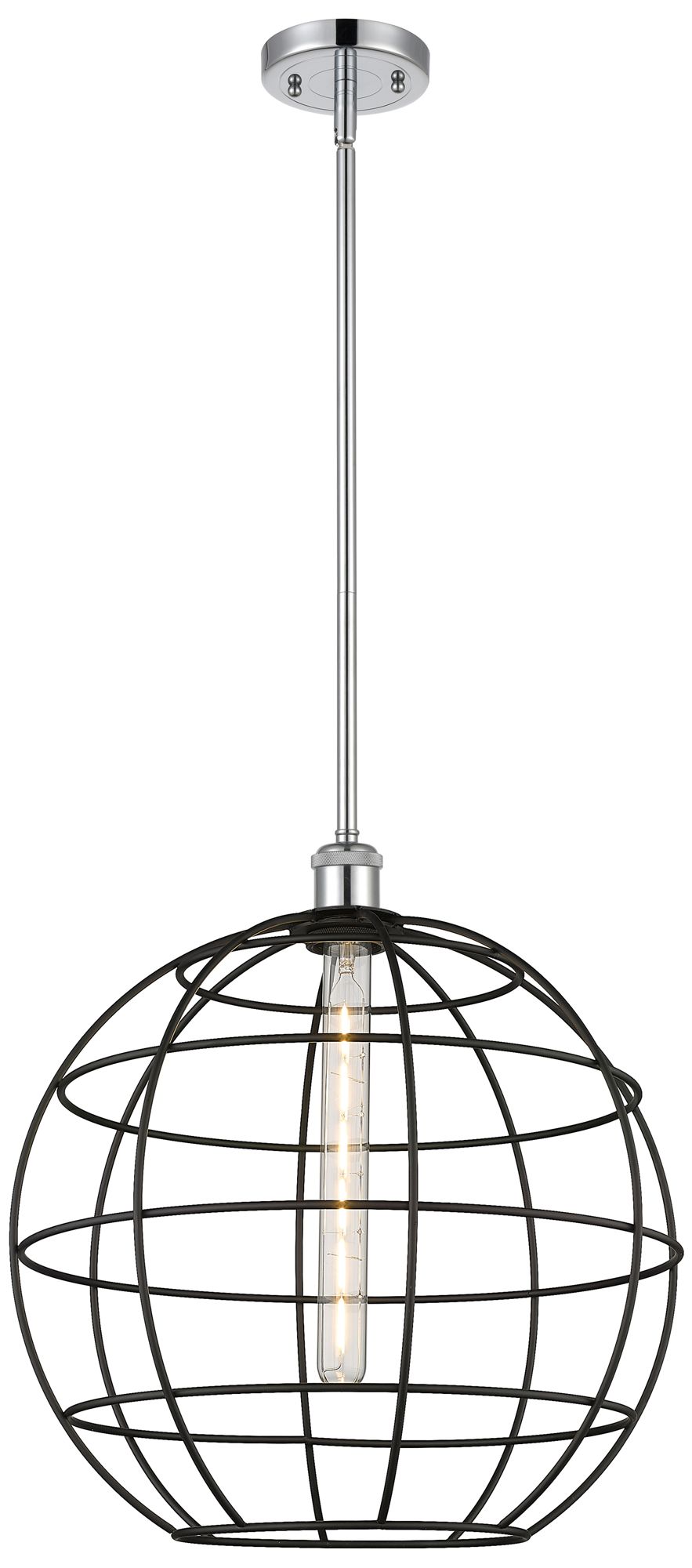 Ballston Lake Placid 16"W Polished Chrome Stem Hung Pendant w/ Black S