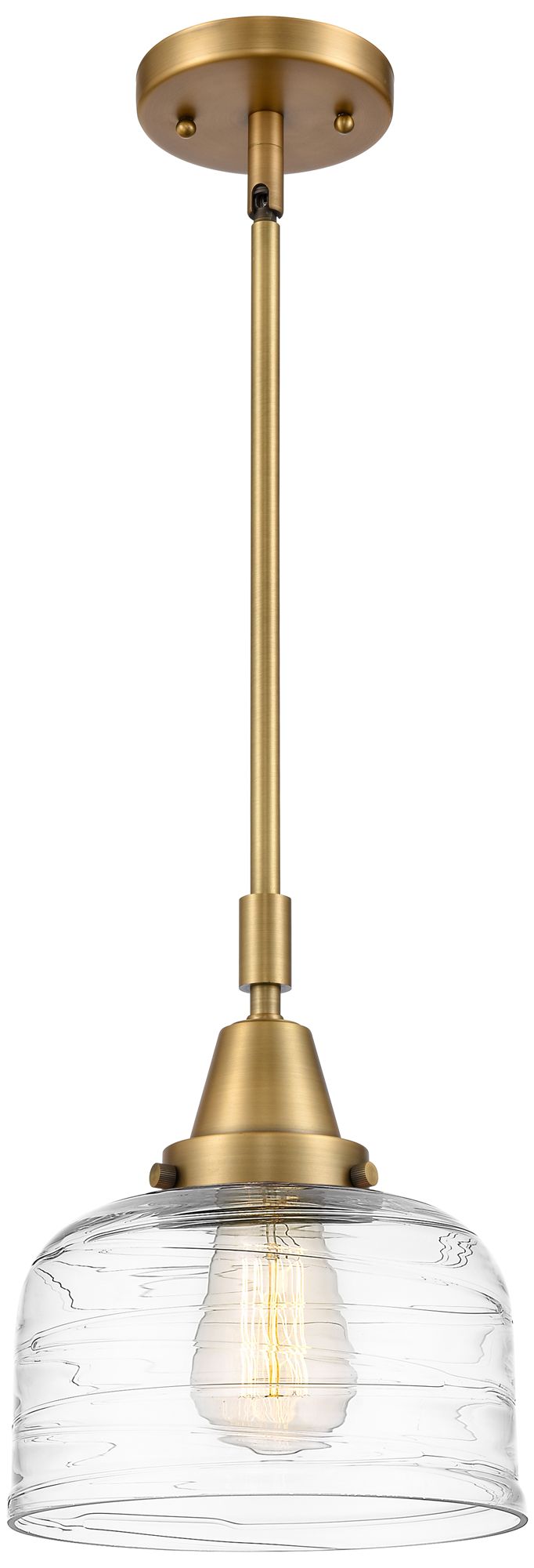 Caden Bell 8" Wide Brushed Brass Stem Hung Mini Pendant w/ Deco Swirl