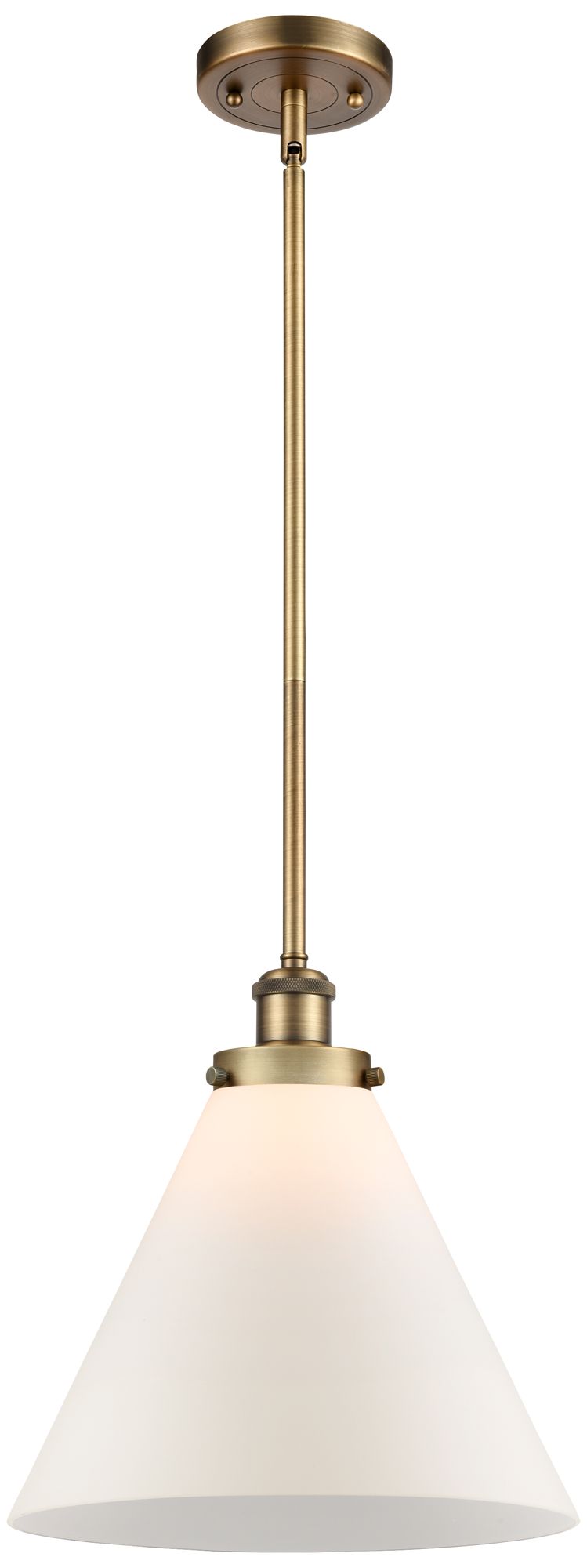 Ballston Urban Cone 12"W Brushed Brass Stem Mini Pendant w/ White Shad