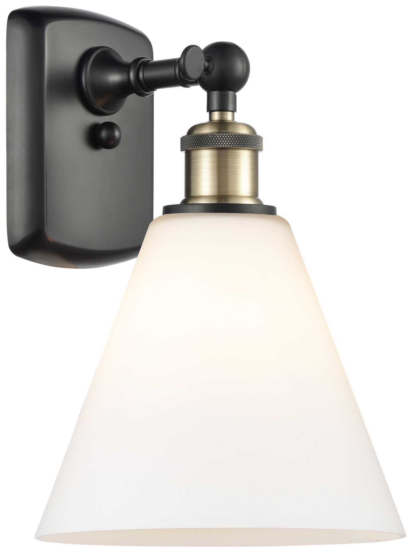 Berkshire Glass 8" LED Sconce - Black Brass Finish - Matte White Shade