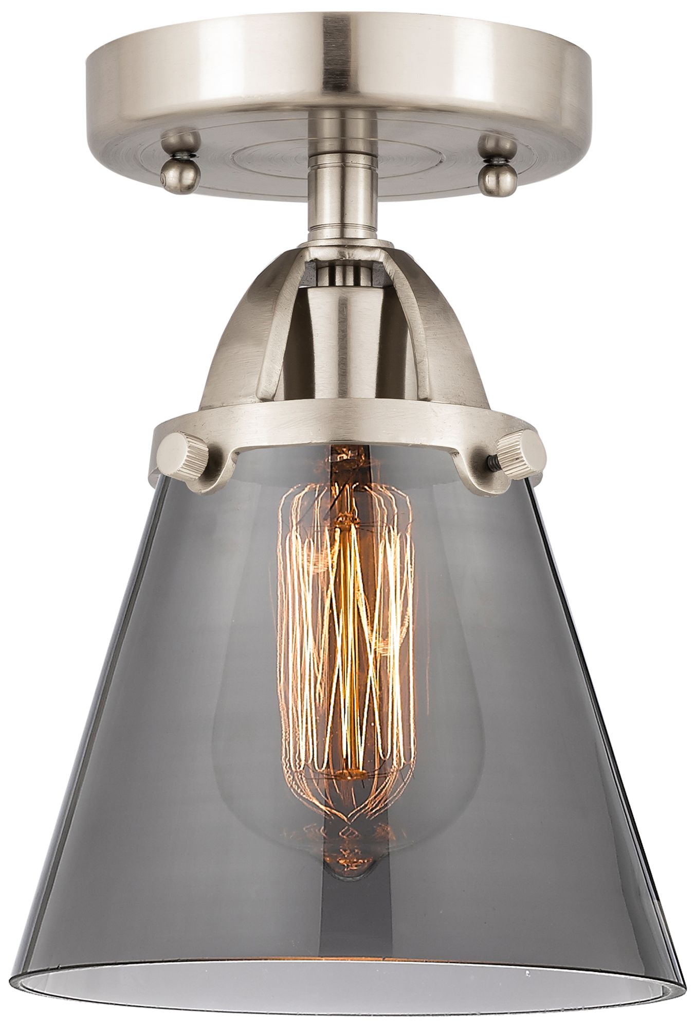 Nouveau 2 Cone 6" LED Semi-Flush Mount - Satin Nickel - Plated Smoke