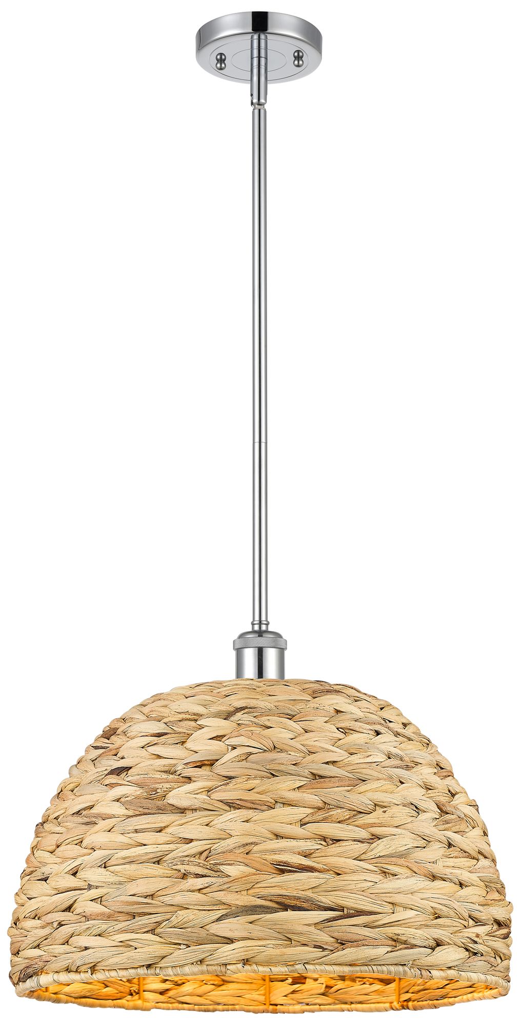 Woven Rattan 15.75"W Polished Chrome Stem Hung Pendant With Natural Sh