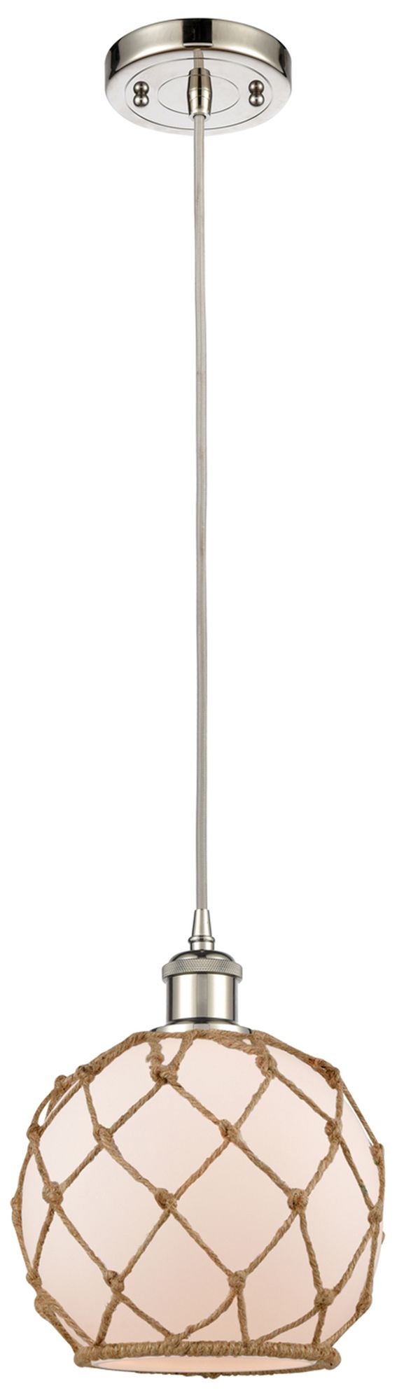 Farmhouse 8"W Corded Polished Nickel Mini Pendant w/ White and Brown S
