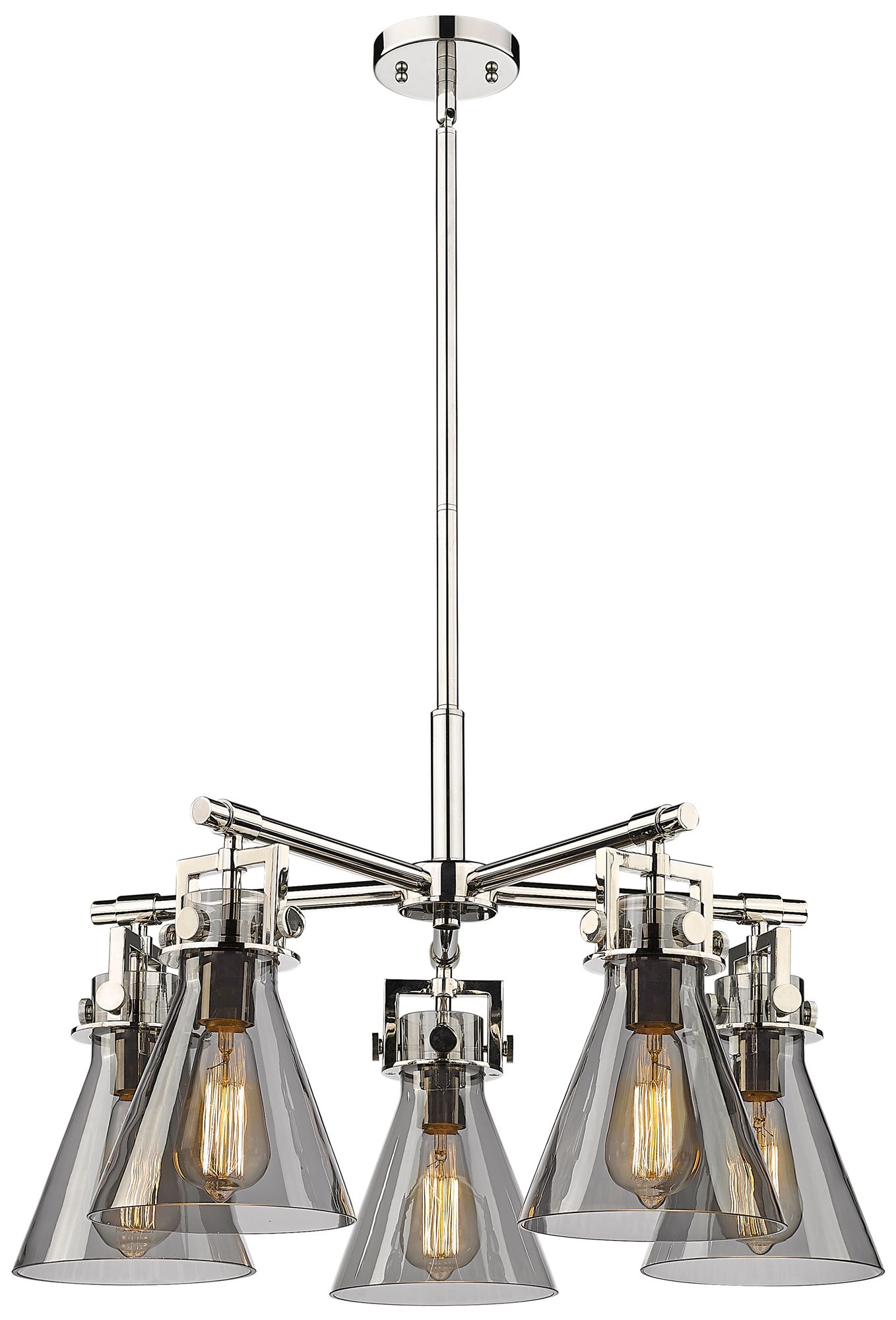 Newton Cone 26"W 5 Light Polished Nickel Stemmed Chandelier w/ Smoke S