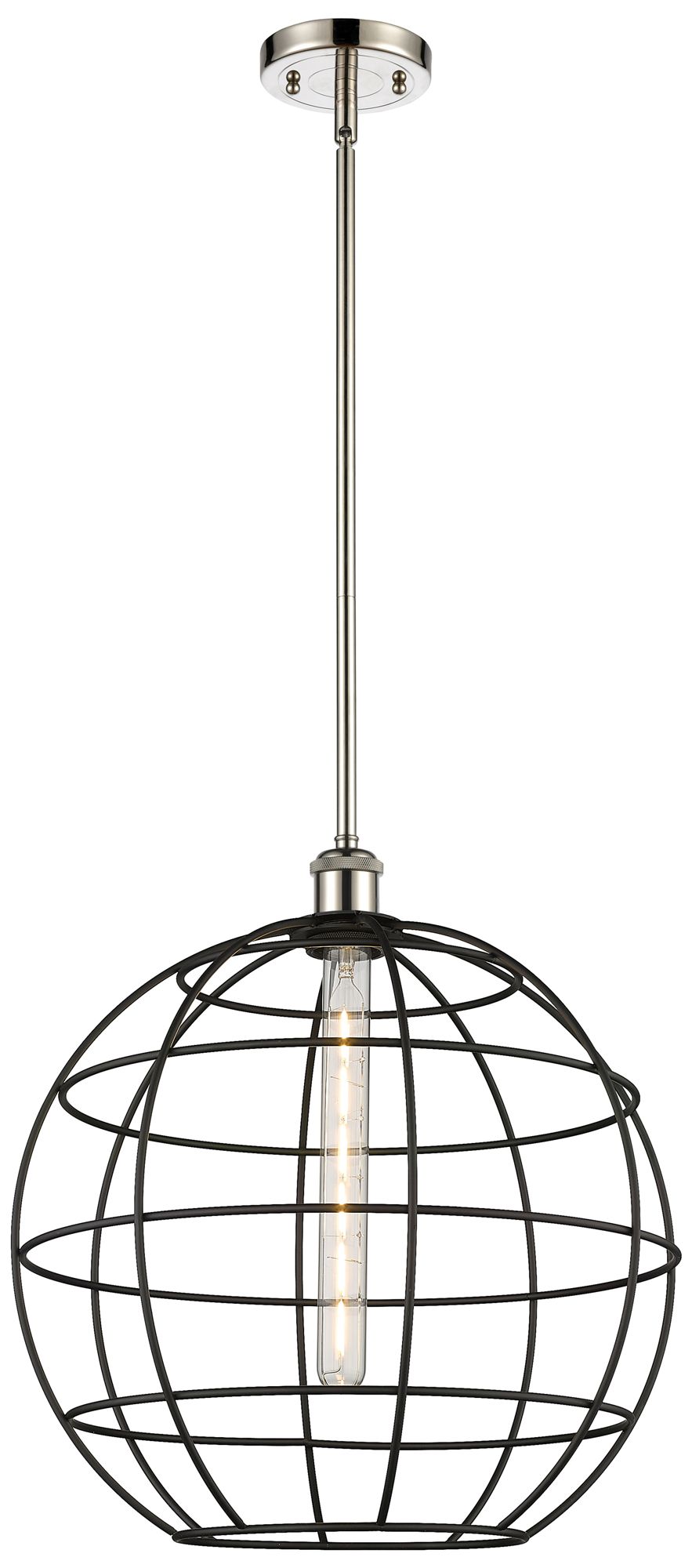 Ballston Lake Placid 16"W Polished Nickel Stem Hung Pendant w/ Black S