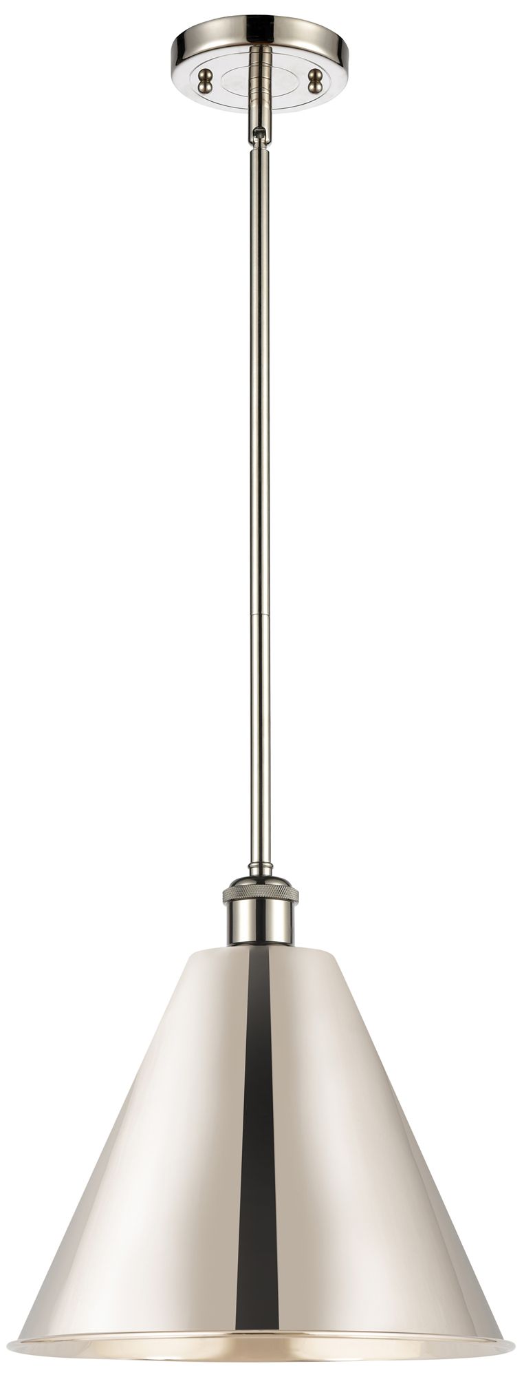 Ballston Cone 12"W Polished Nickel LED Pendant w/ Polished Nickel Shad