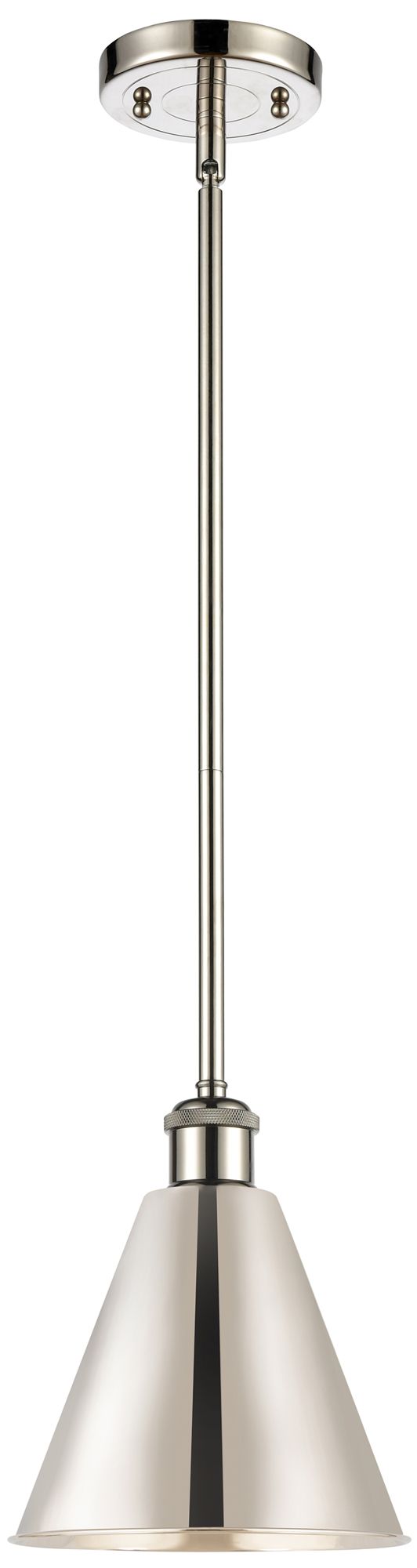 Ballston Cone 8" Wide Polished Nickel Pendant With Polished Nickel Sha