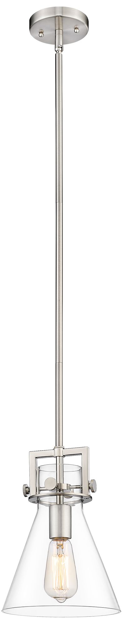 Newton Cone 8" LED Mini Pendant - Brushed Satin Nickel - Clear