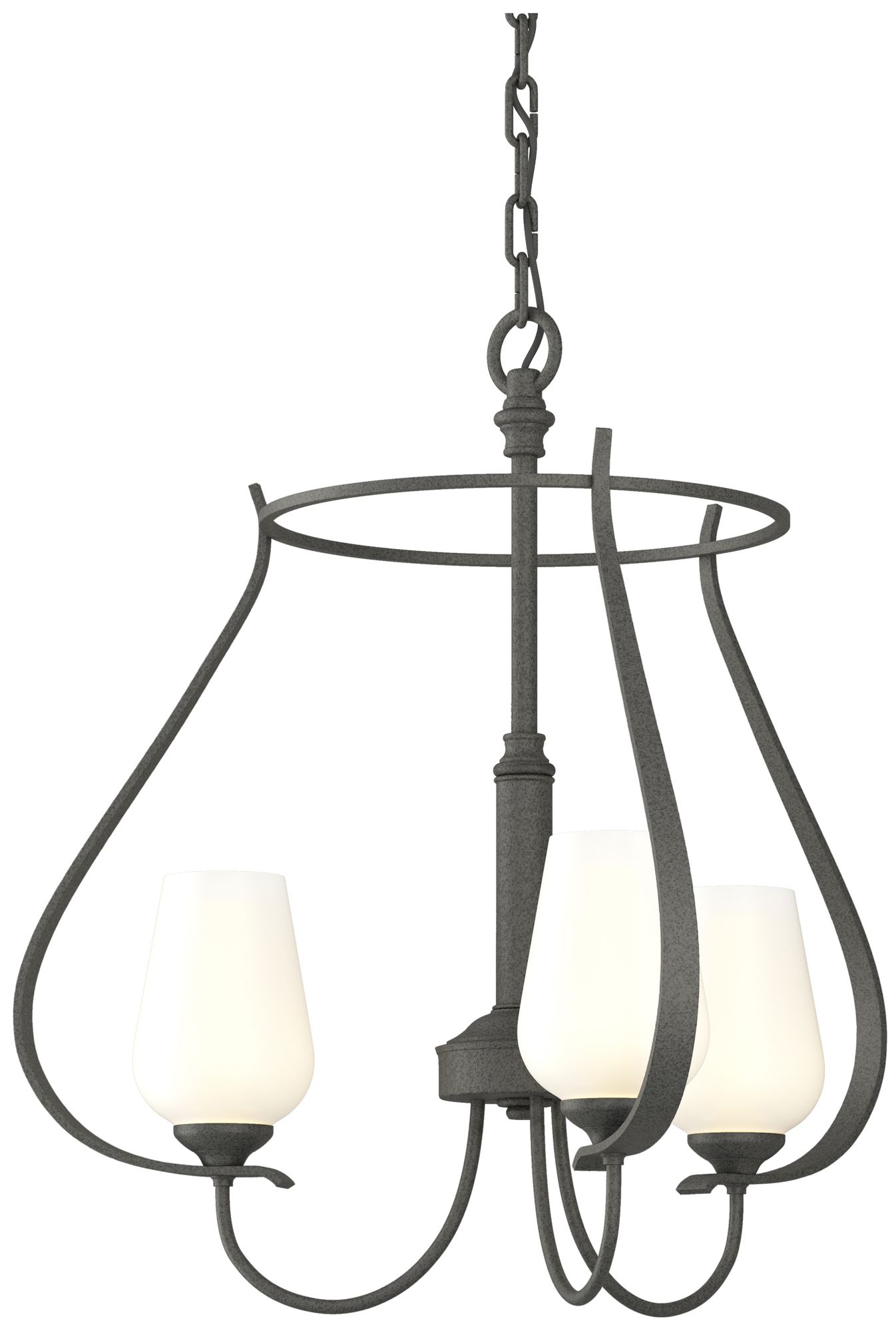 Flora 19.4" Wide 3 Arm Round Natural Iron Chandelier With Opal Glass