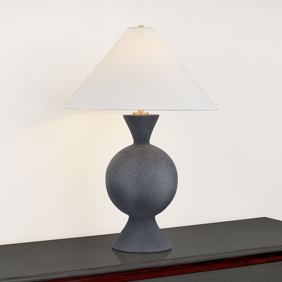 Mitzi Zadeh Table Lamp 19" in Aged Brass and Ceramic Pale Midnight