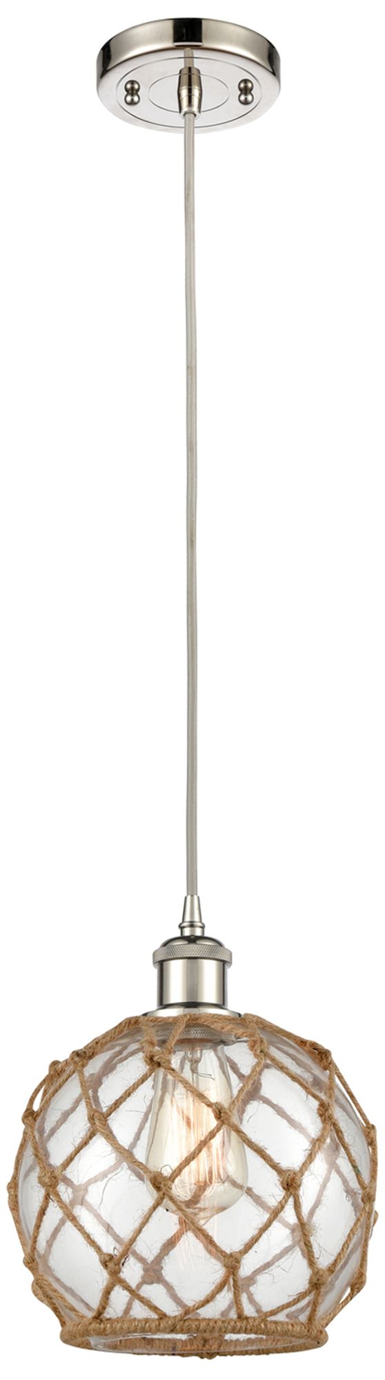 Farmhouse 8"W Corded Polished Nickel Mini Pendant w/ Clear and Brown S