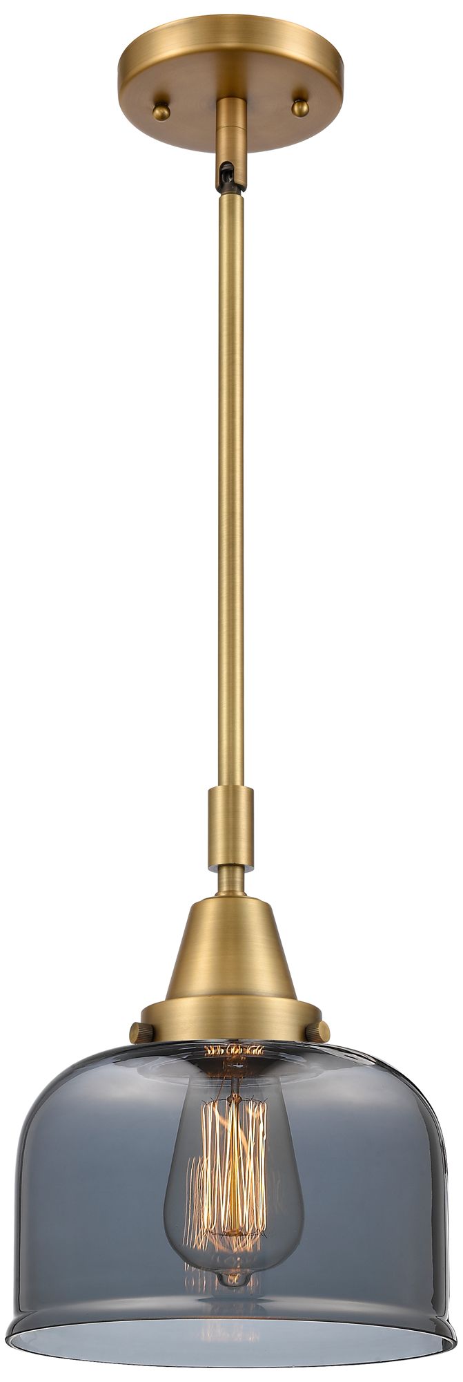 Caden Bell 8"W Brushed Brass Stem Hung Mini Pendant w/ Plated Smoke Sh
