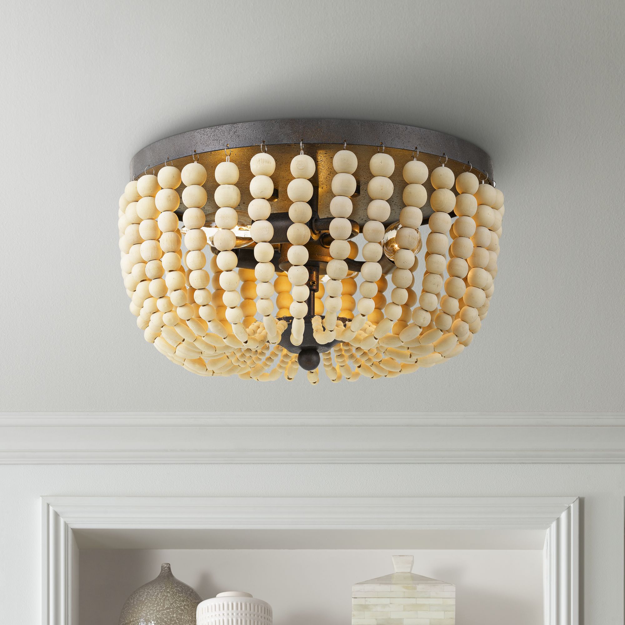 Crystorama Rylee 12 1/2" Wide Bronze Wood Bead Ceiling Light