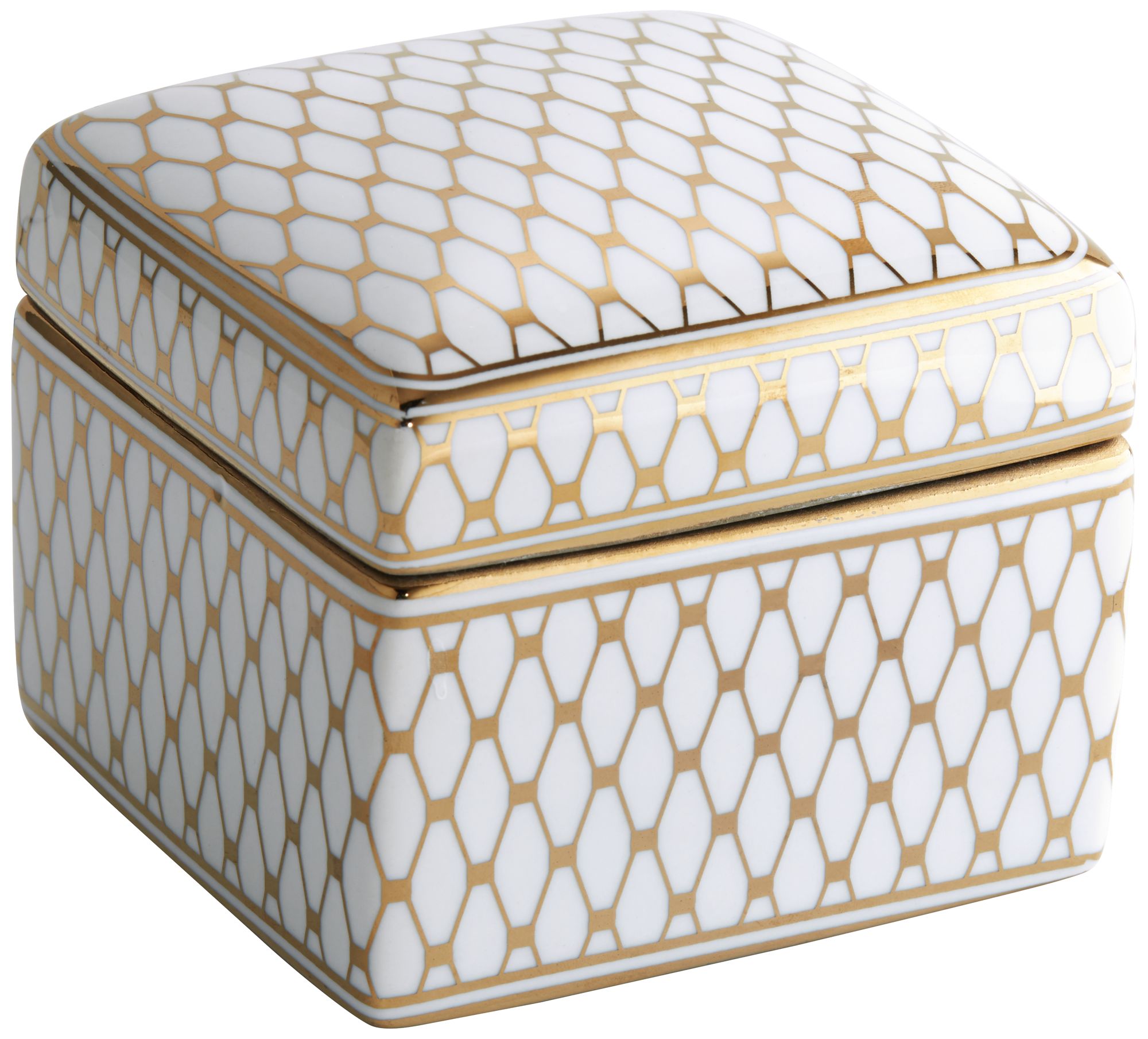 Verona 4 1/2" Wide White and Gold Ceramic Decorative Box