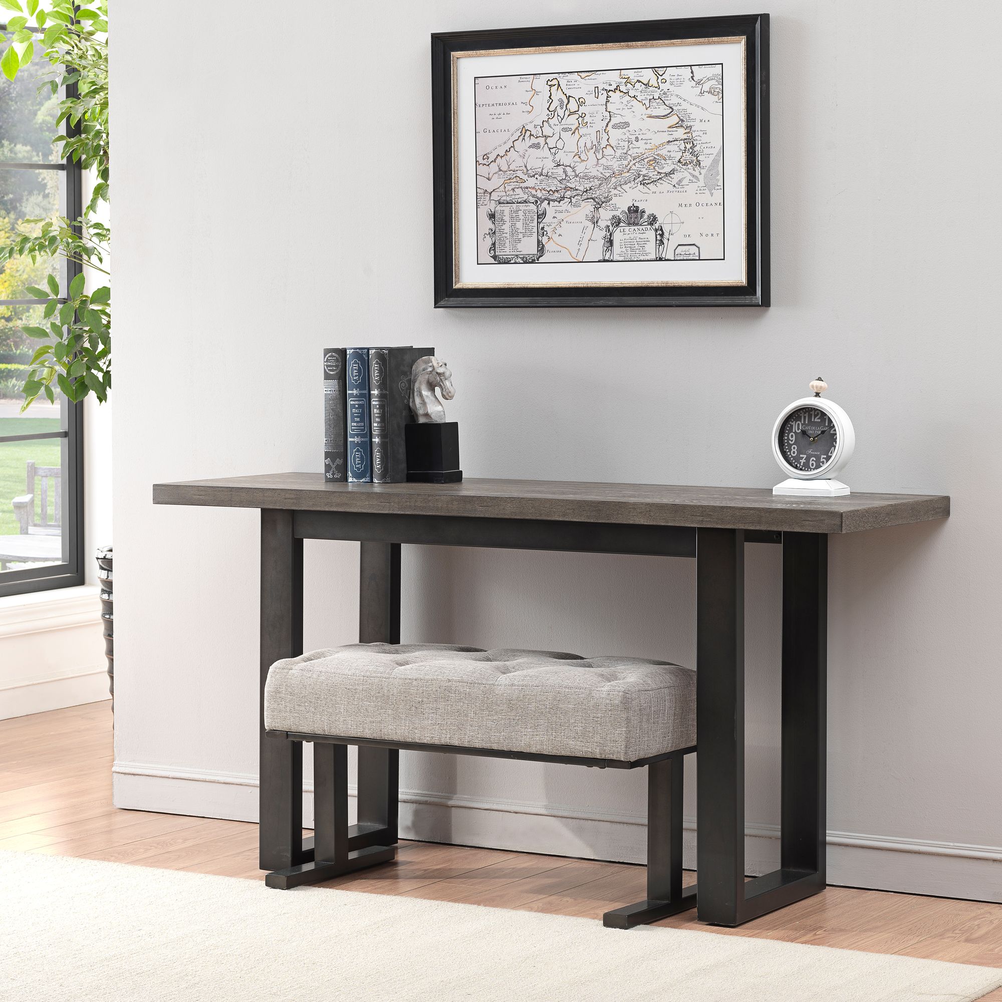 Taupe Gray and Gunmetal 59" Wide Console Table and Stool Set