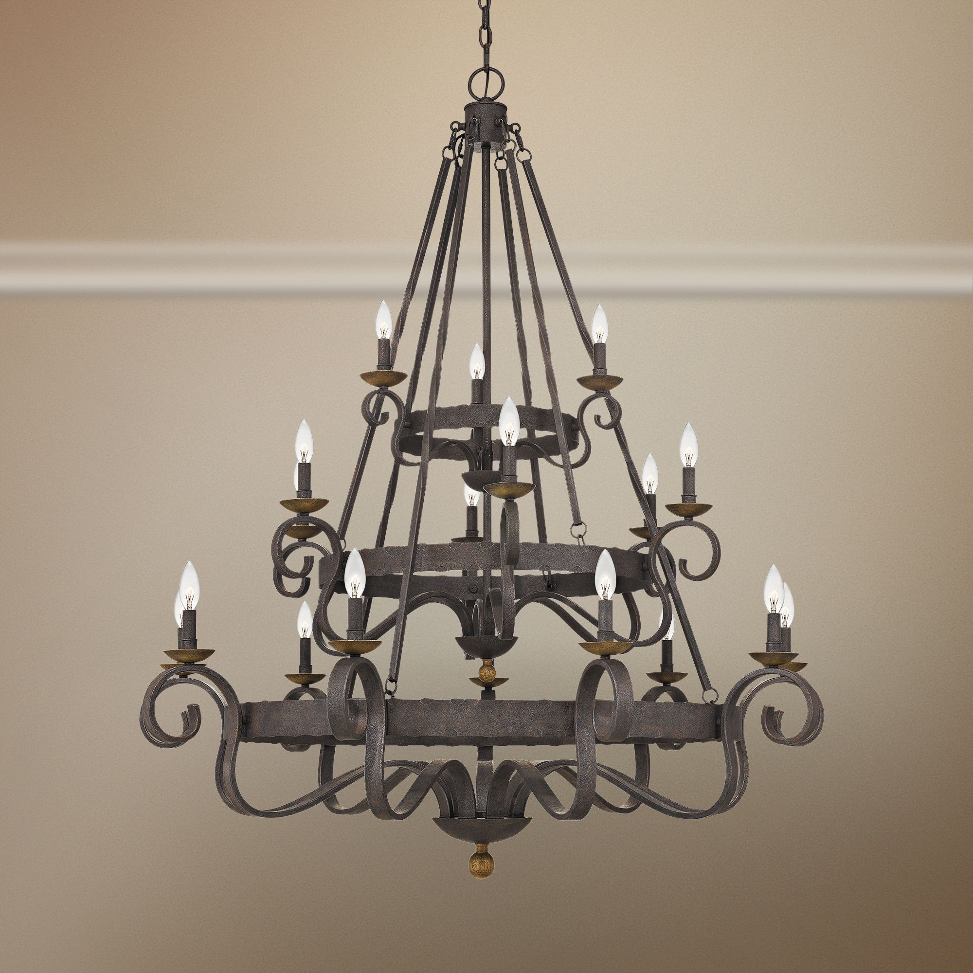 Quoizel Noble 48" Wide Rustic Black 18-Light 3-Tier Scroll Chandelier