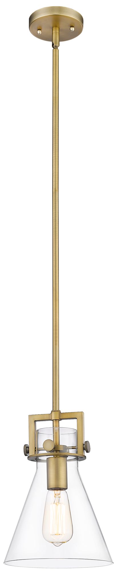 Newton Cone 8" LED Mini Pendant - Brushed Brass - Clear Shade