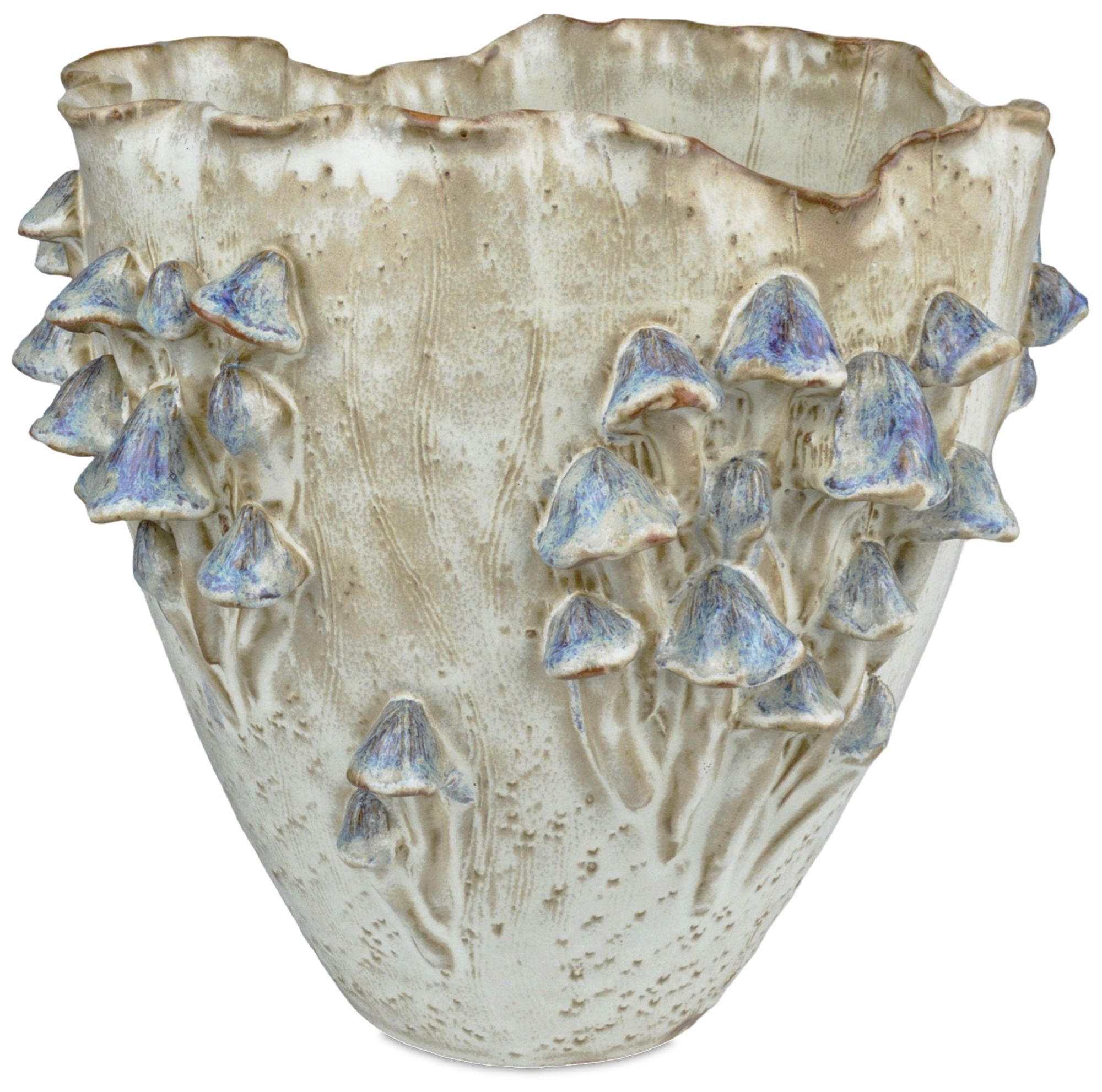 Currey & Company 10" Black Forest Mushrooms Ivory Vase