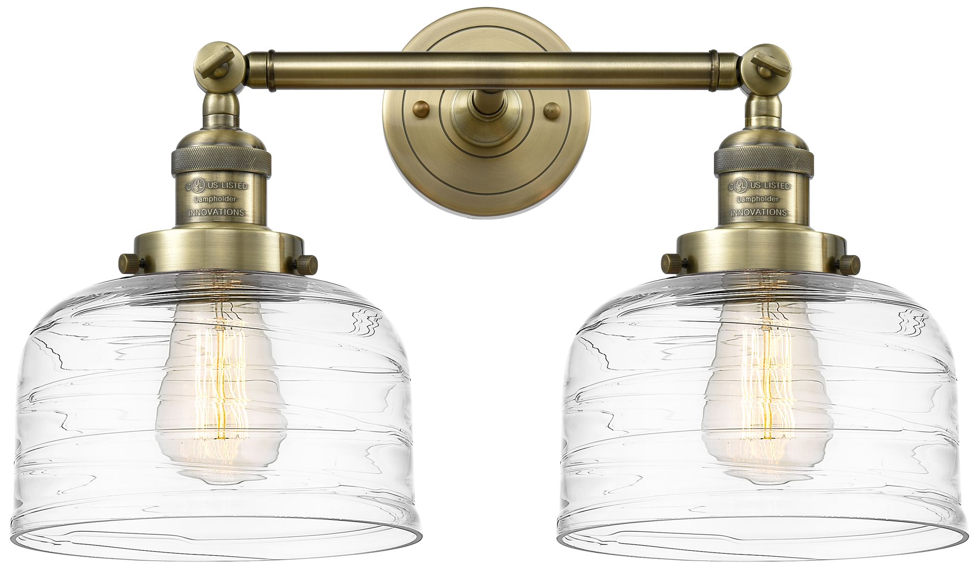 Bell 2 Light 19" Bath Light - Antique Brass - Clear Deco Swirl Shade