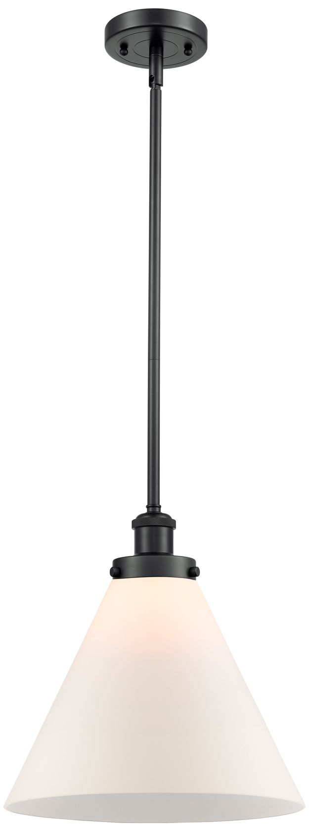 Ballston Urban Cone 12"W Matte Black Stem Hung Mini Pendant w/ White S