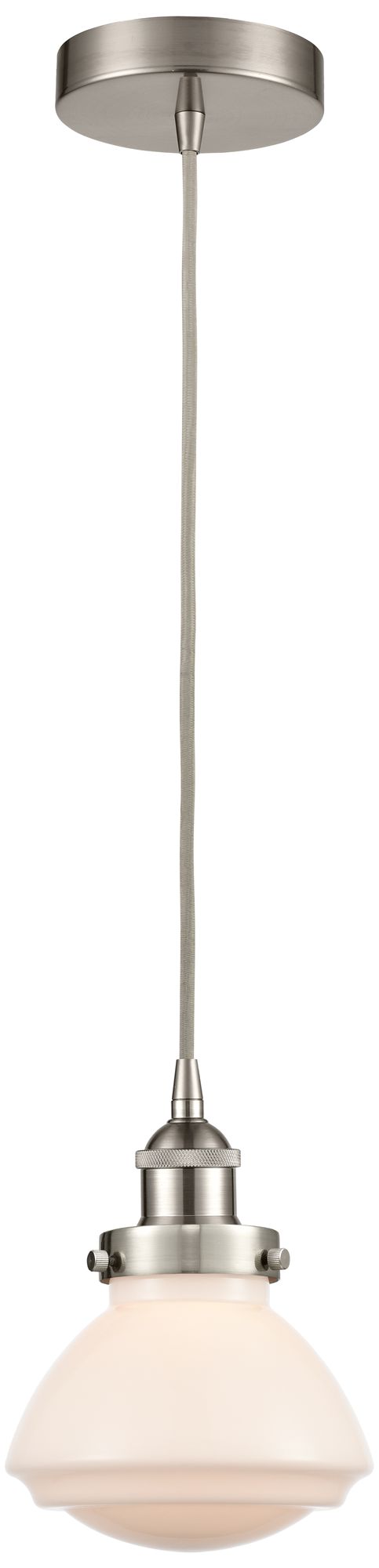 Olean 7" Brushed Satin Nickel Mini Pendant w/ Matte White Shade
