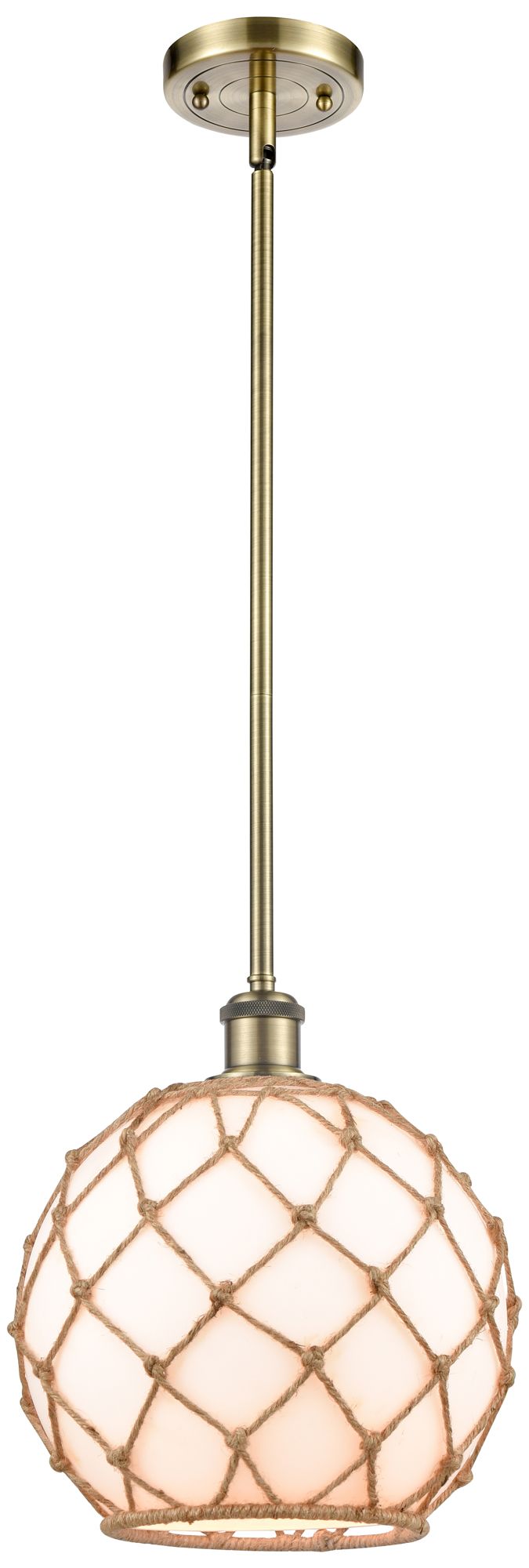 Farmhouse 10"W Stemmed Antique Brass Mini Pendant w/ White and Brown S
