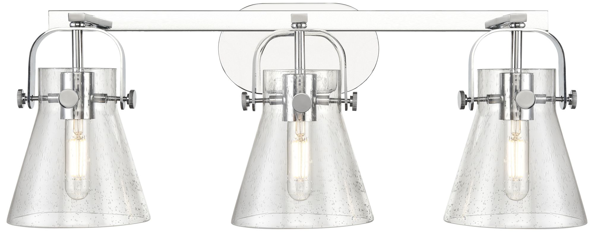 Pilaster II Cone 26.5" Wide 3 Light Chrome Bath Light With Seedy Shade