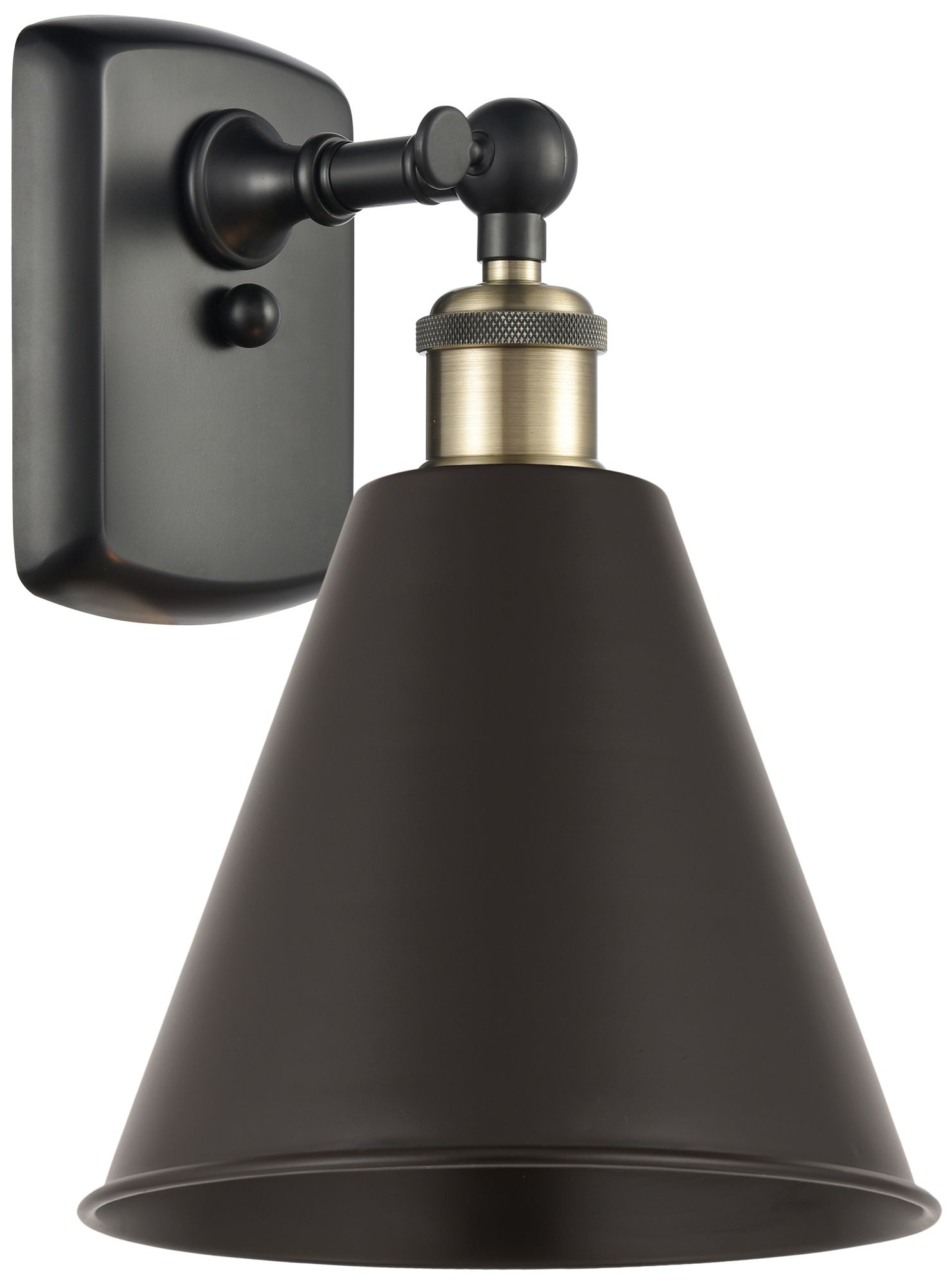 Ballston Cone 11.25"High Black Brass LED Sconce With Black Shade