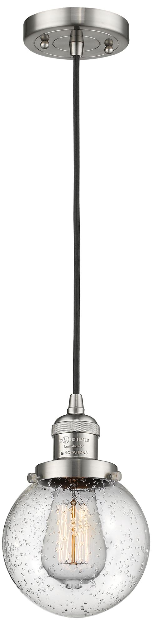Franklin Beacon 6"W Brushed Satin Nickel Corded Mini Pendant w/ Seedy