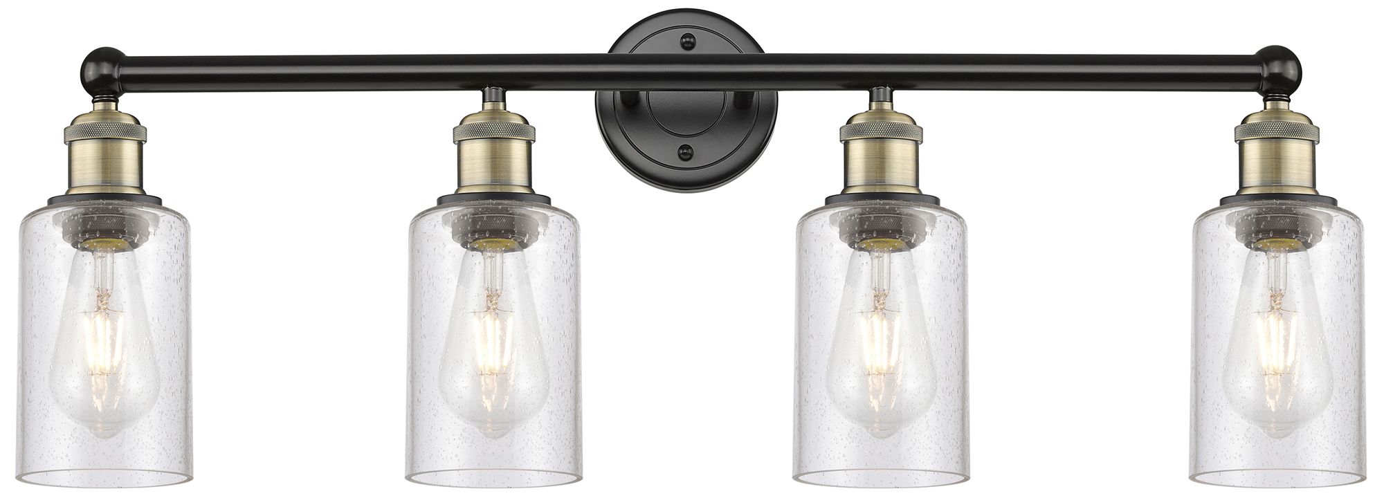Clymer 30.88" Wide 4 Light Black Brass Bath Vanity Light With Seedy Sh