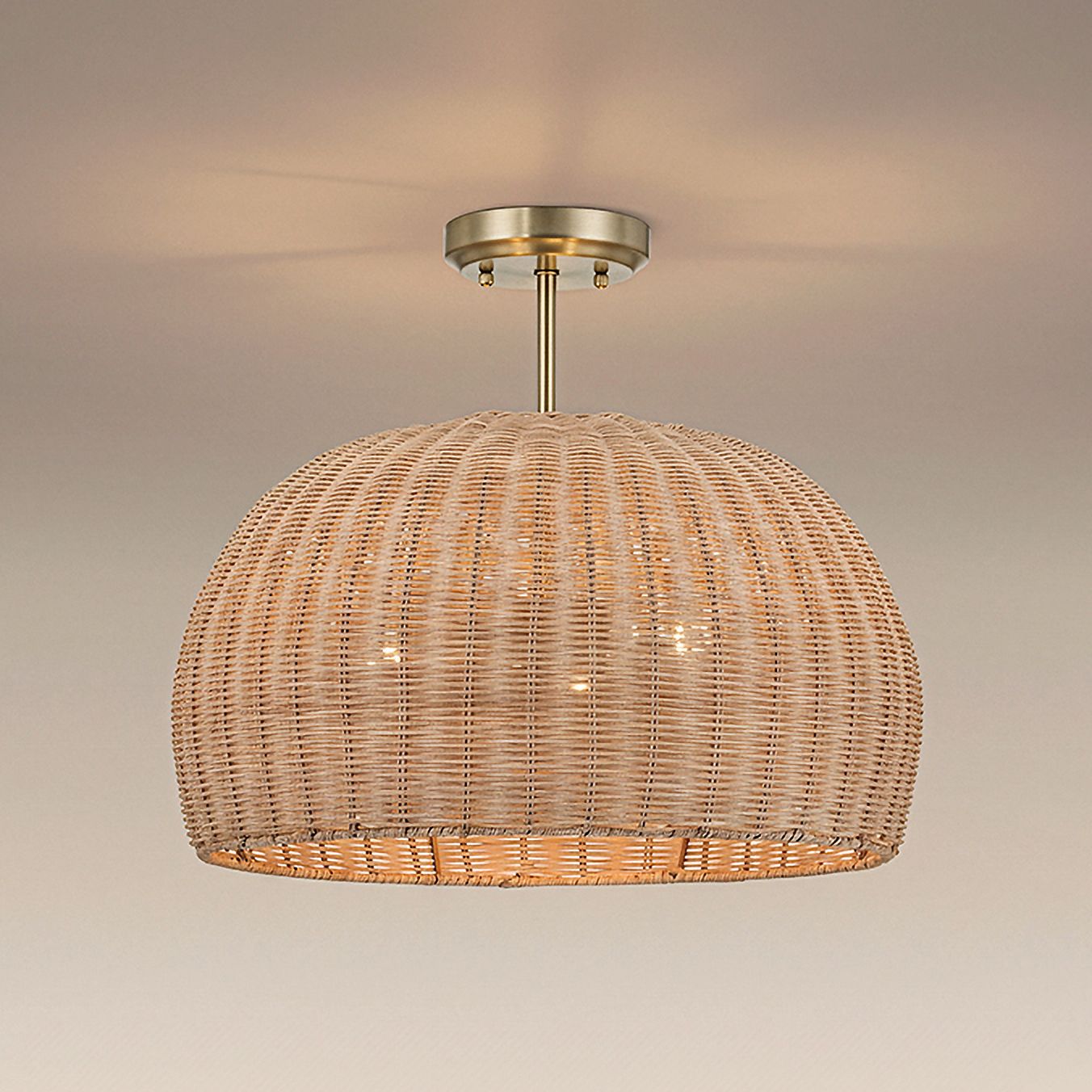 Possini Euro Fitzwilliam 18"W Brass and Wicker 3-Light Ceiling Light