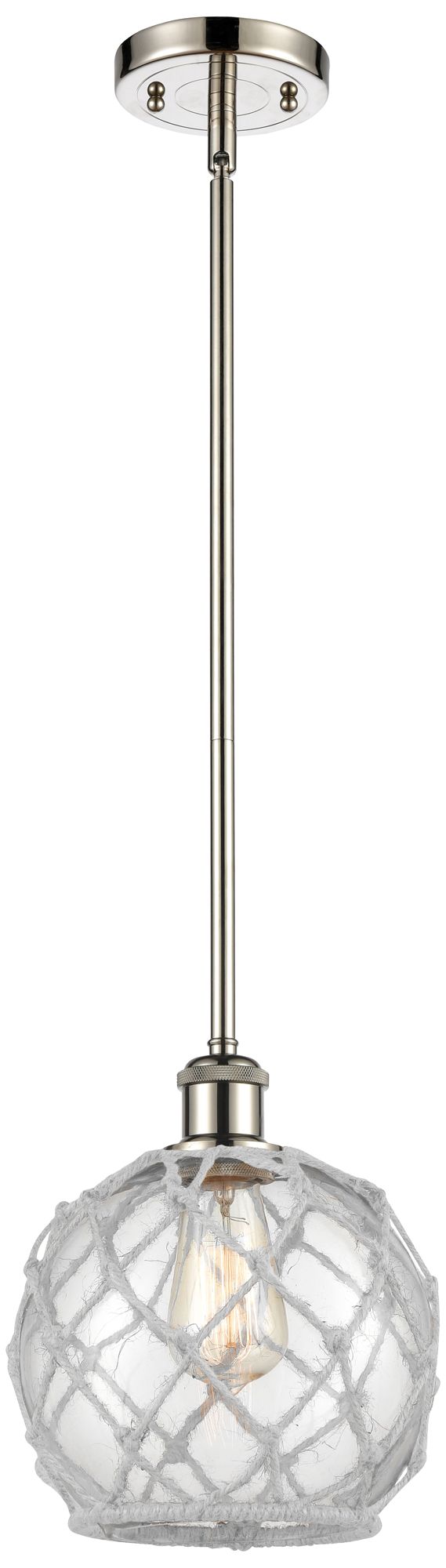 Farmhouse 8"W Stemmed Polished Nickel Mini Pendant w/ Clear and White
