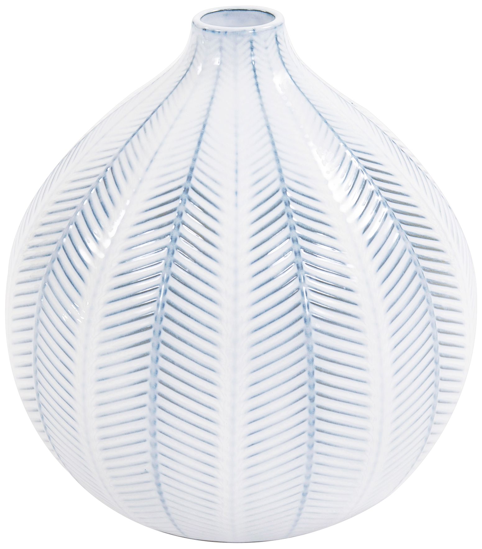 Tairo Blue and White Chevron 10" High Ceramic Globe Vase