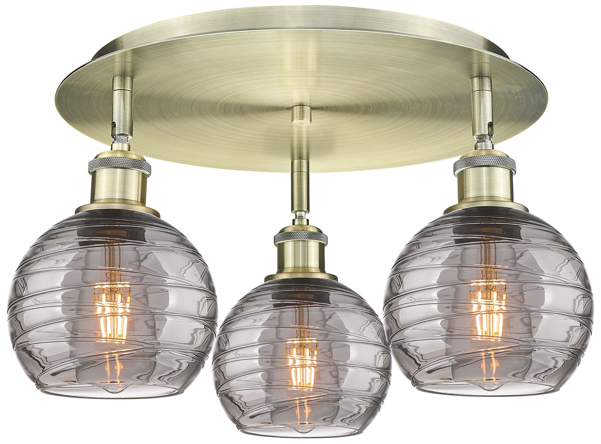 Ballston Athens 18"W 3-Light Antique Brass Flush Mount w/ Smoke Swirl