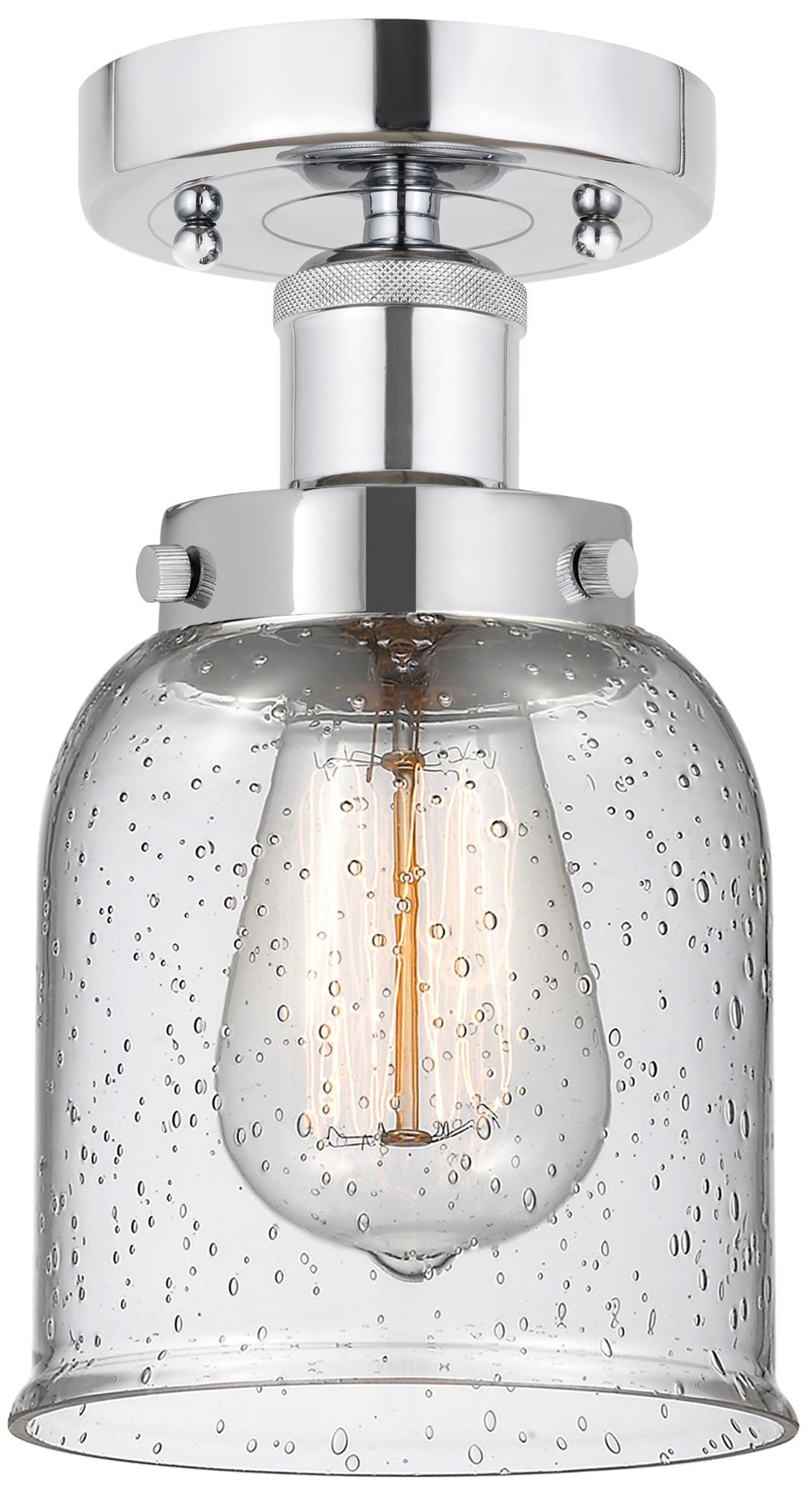 Edison Small Bell 7" Polished Chrome Semi Flush Mount w/ Seedy Shade