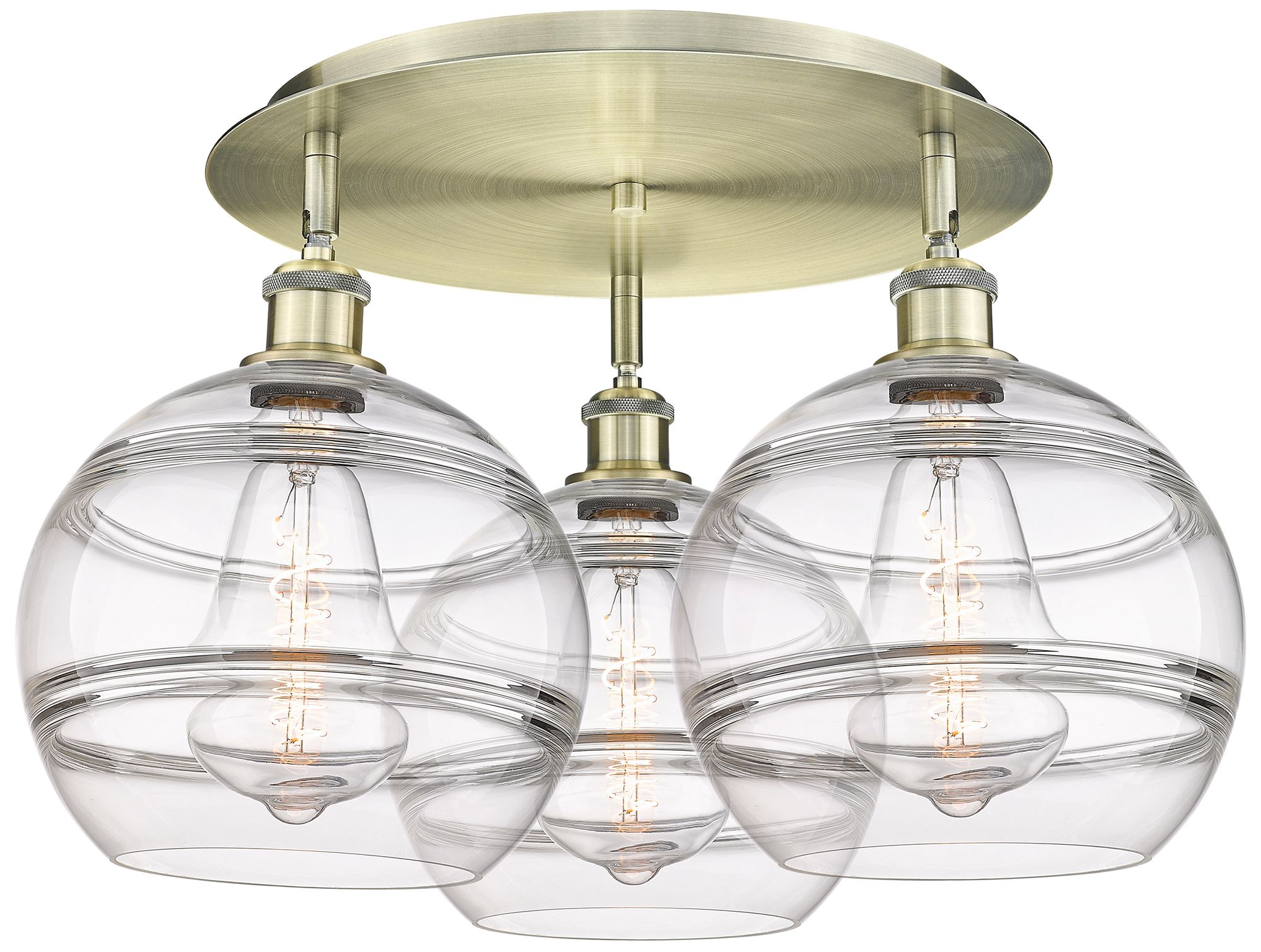 Ballston Rochester 21.75"W 3-Light Antique Brass Flush Mount w/ Clear