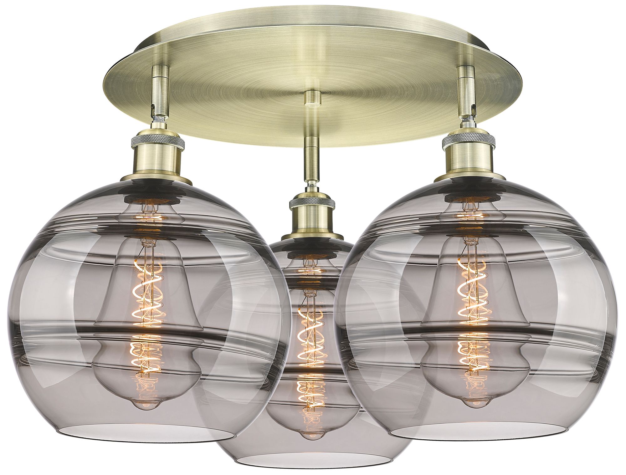 Ballston Rochester 21.75"W 3-Light Antique Brass Flush Mount w/ Smoke