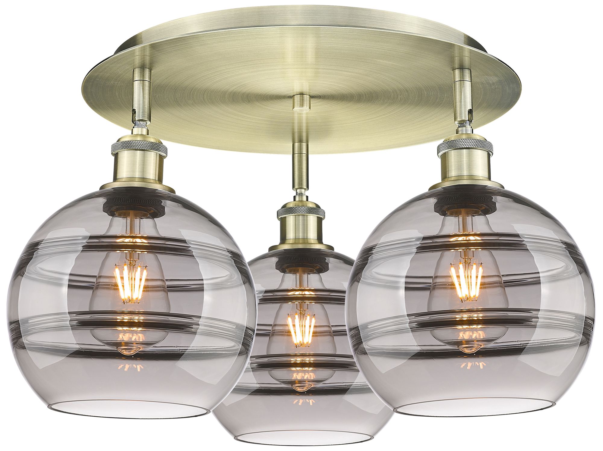 Ballston Rochester 19.75"W 3-Light Antique Brass Flush Mount w/ Smoke