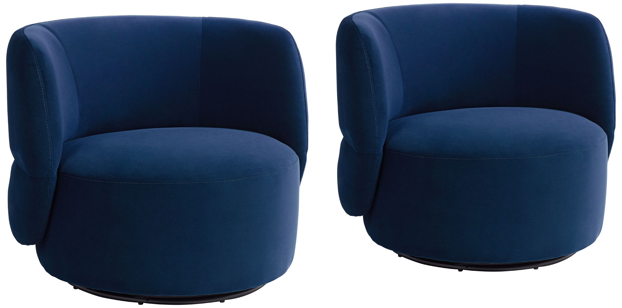 Fontana 36"W Prussian Blue Velvety Fabric Accent Swivel Chair Set of 2