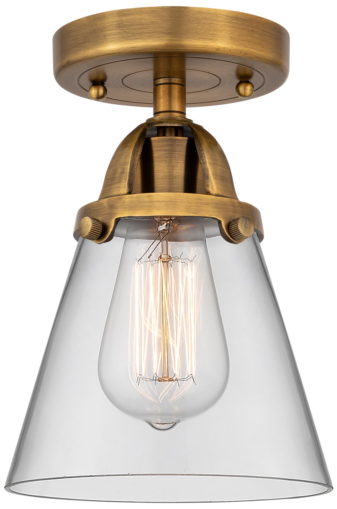 Nouveau 2 Cone 6" Semi-Flush Mount - Brushed Brass - Clear Shade