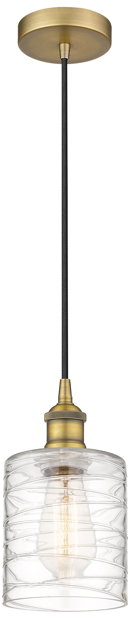 Edison Cobbleskill 5" Mini Pendant - Brushed Brass - Deco Swirl Shade