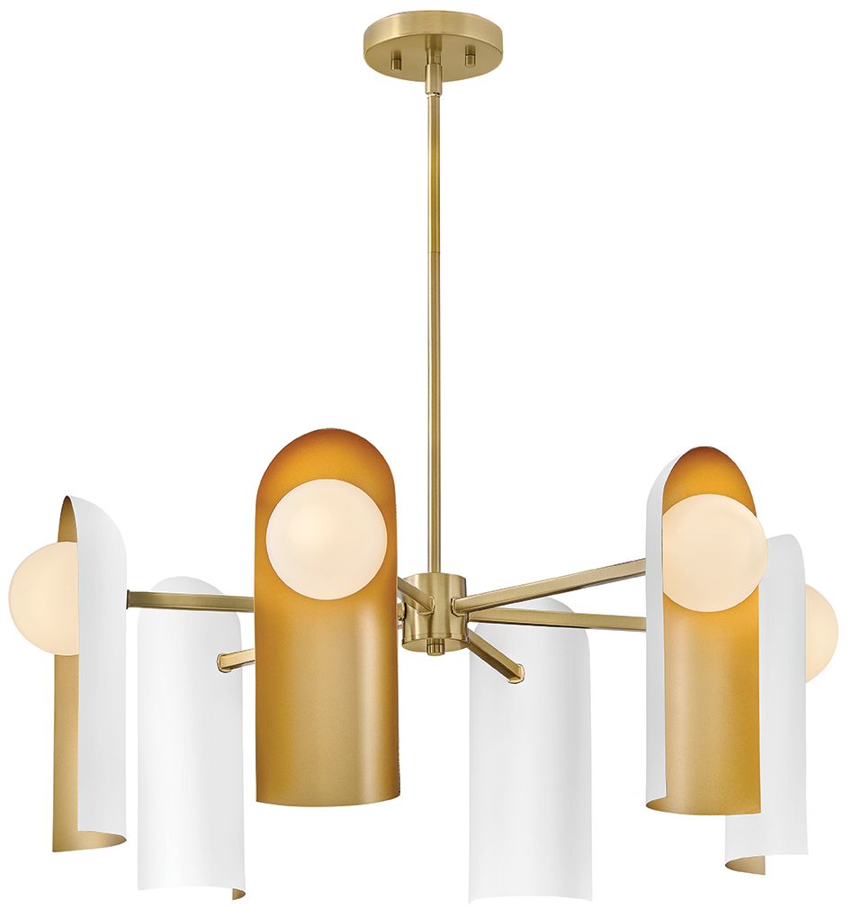 Zuri 30"W Lacquered Brass and Off-White 6-Light Chandelier