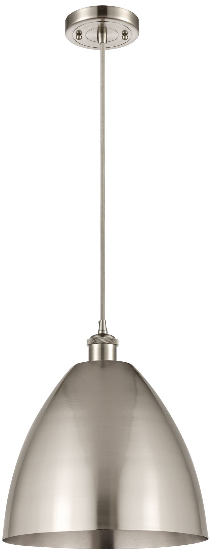 Ballston Bristol 12"W Brushed Nickel Cord Mini Pendant w/ Nickel Shade