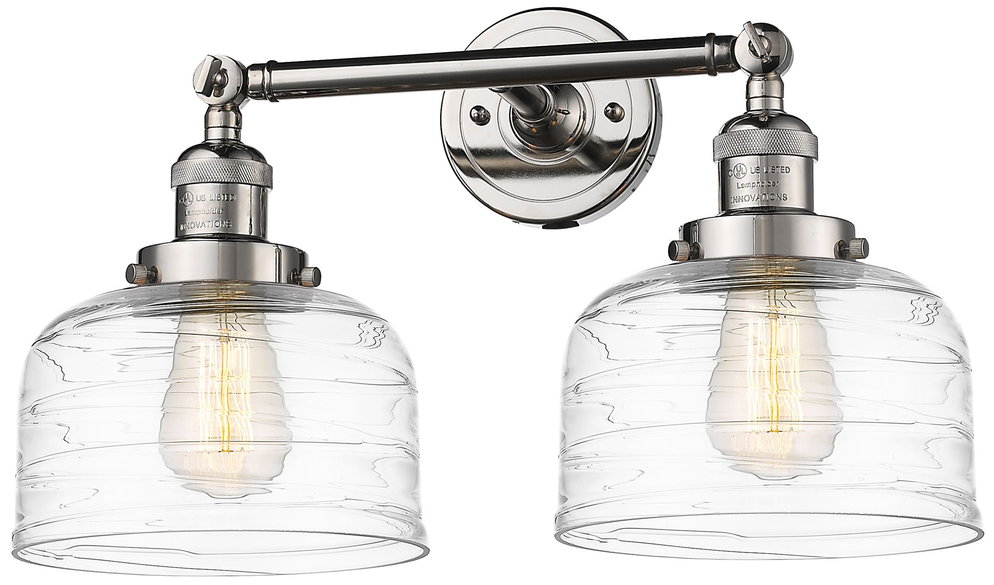 Bell 2 Light 19" Bath Light - Polished Nickel - Clear Deco Swirl Shade