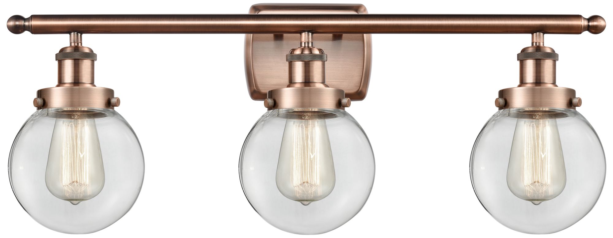 Ballston Urban Beacon 3 Light 26" LED Bath Light - Copper - Clear Shad