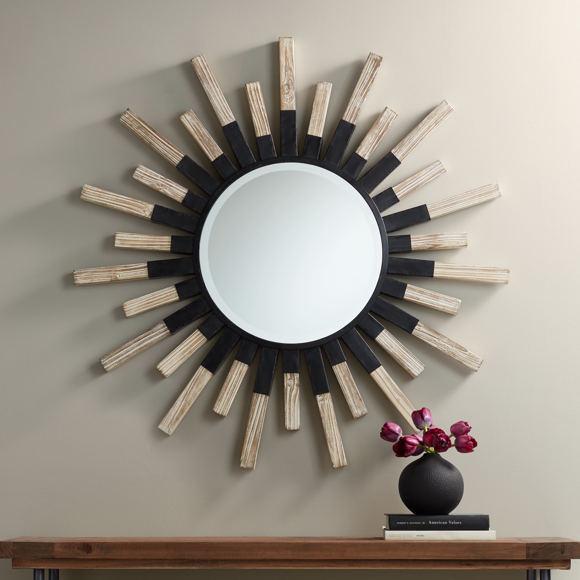 Mallie 42" Round Black Metal Whitewash Sunburst Wall Mirror