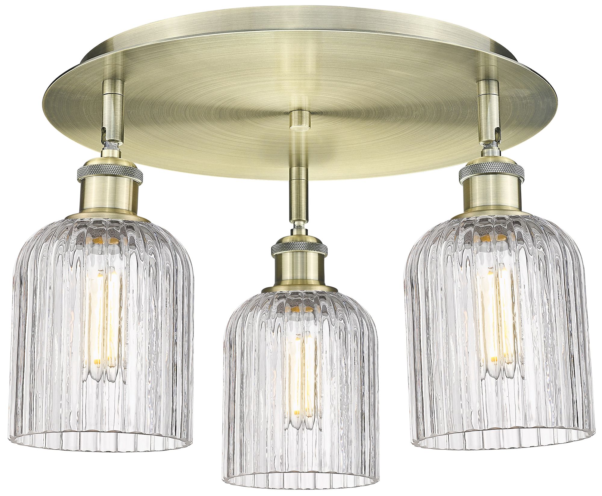 Bridal Veil 16.75"W 3-Light Antique Brass Flush Mount w/ Clear Shade